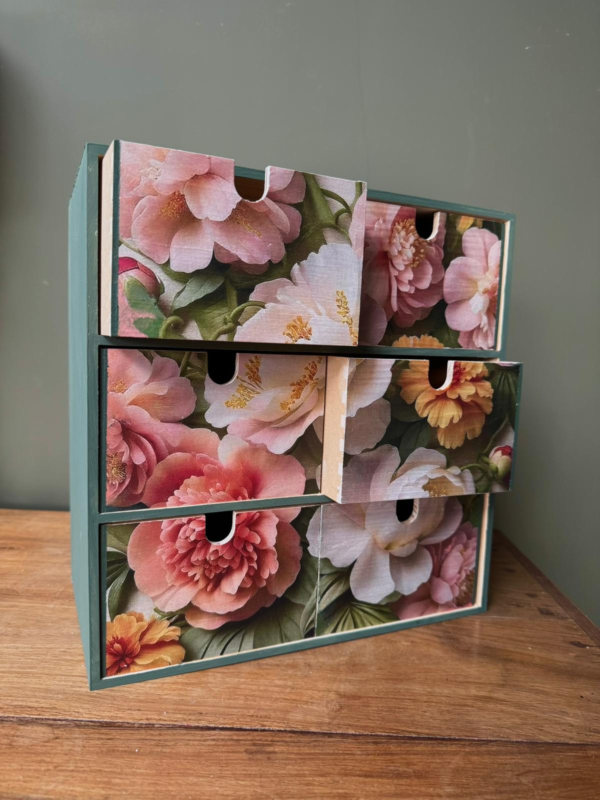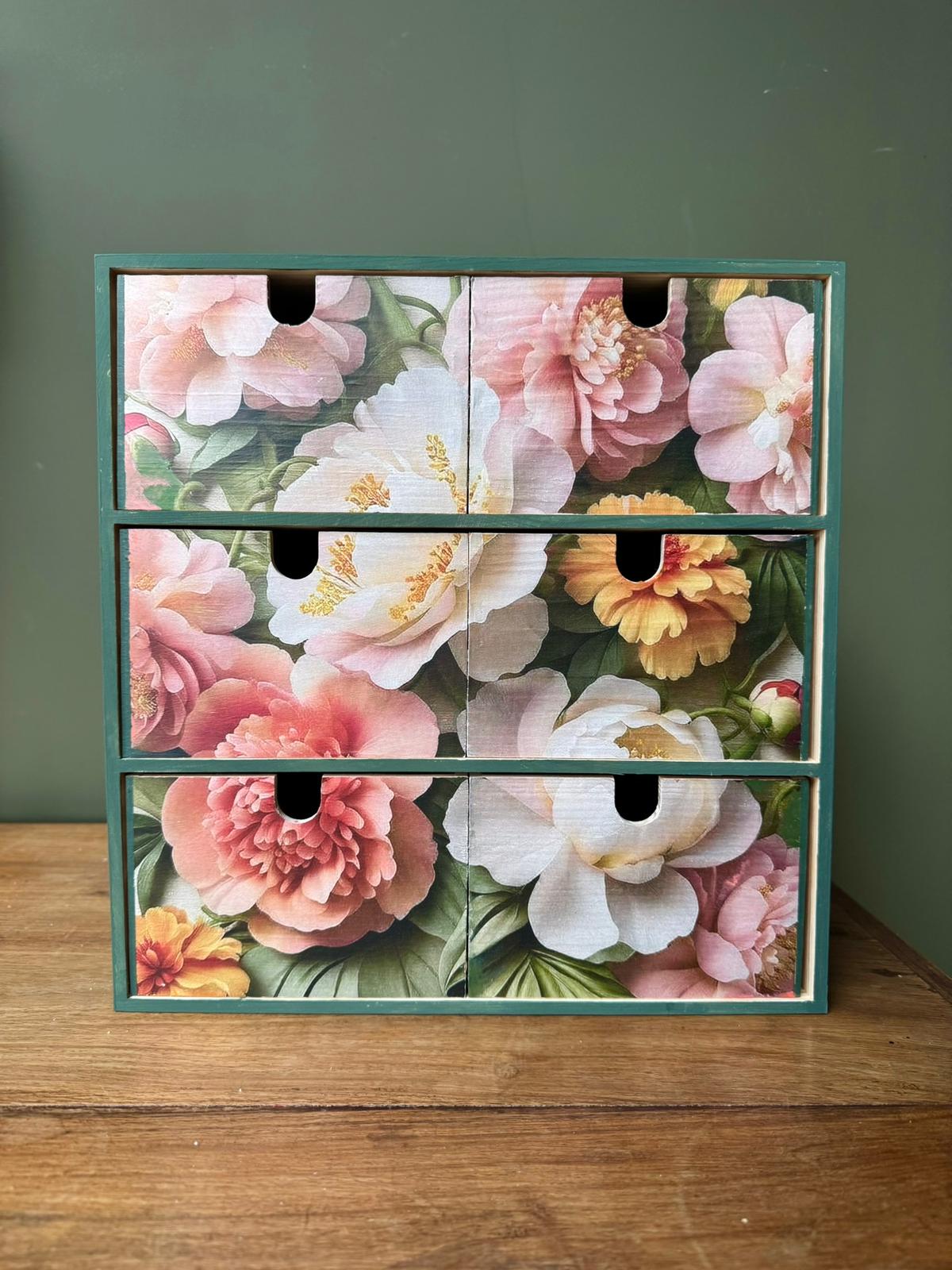 All materials required are provided in the ticket price including a new set of ikea storage drawers, a choice of decoupage paper designs and paint colours.