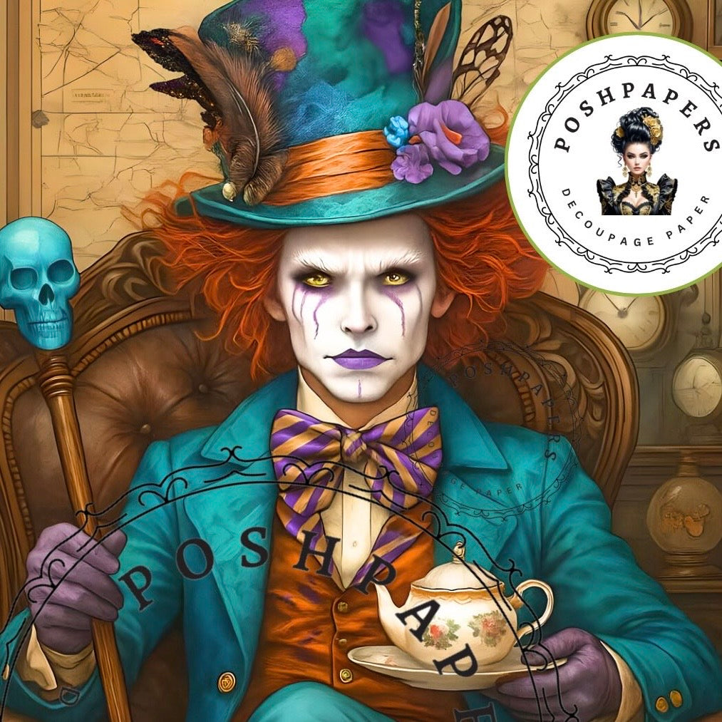 Posh Papers Decoupage paper - Mad Hatter 2 in a chair.