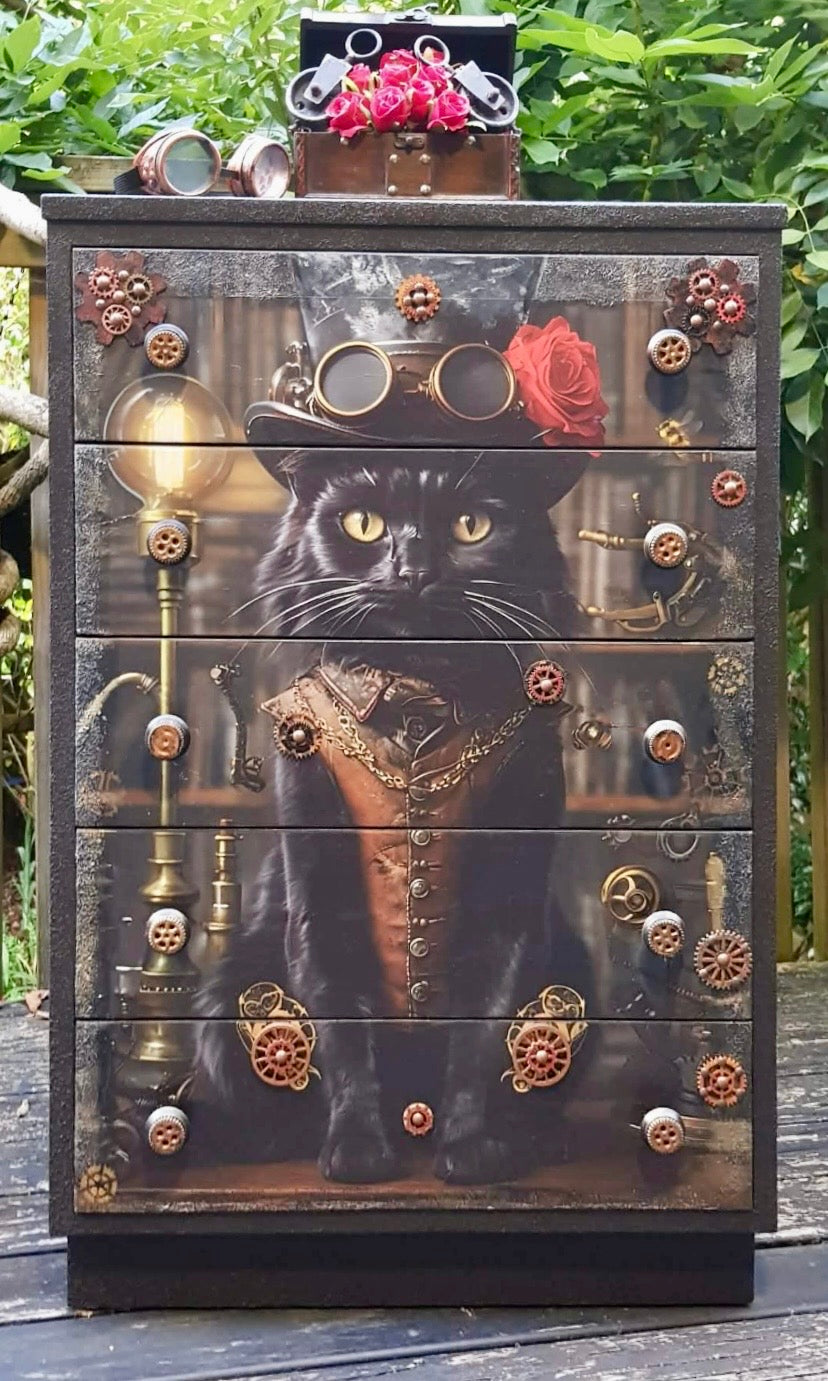 Posh Papers Deb is a Steampunk cat decoupage paper