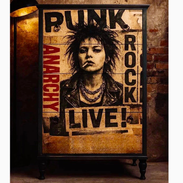 Three Yellow Goats Decoupage paper Anarchy - when 70s punk meets your furniture!
